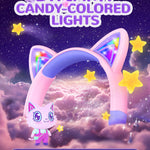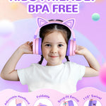iClever Kids bluetooth headphones feature cat-ear shapes that give off dazzling RGB lights and the cute patterns on the ear shells are more of the icing on the cake! Wrapped by shining pink packaging and with a kitten sticker included, these kids headphones are the perfect gift for your little ones.